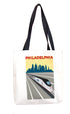 Tote bag features Michael Schwab's Acela (Philadelphia) illustration on both sides and measures 18" x 18".