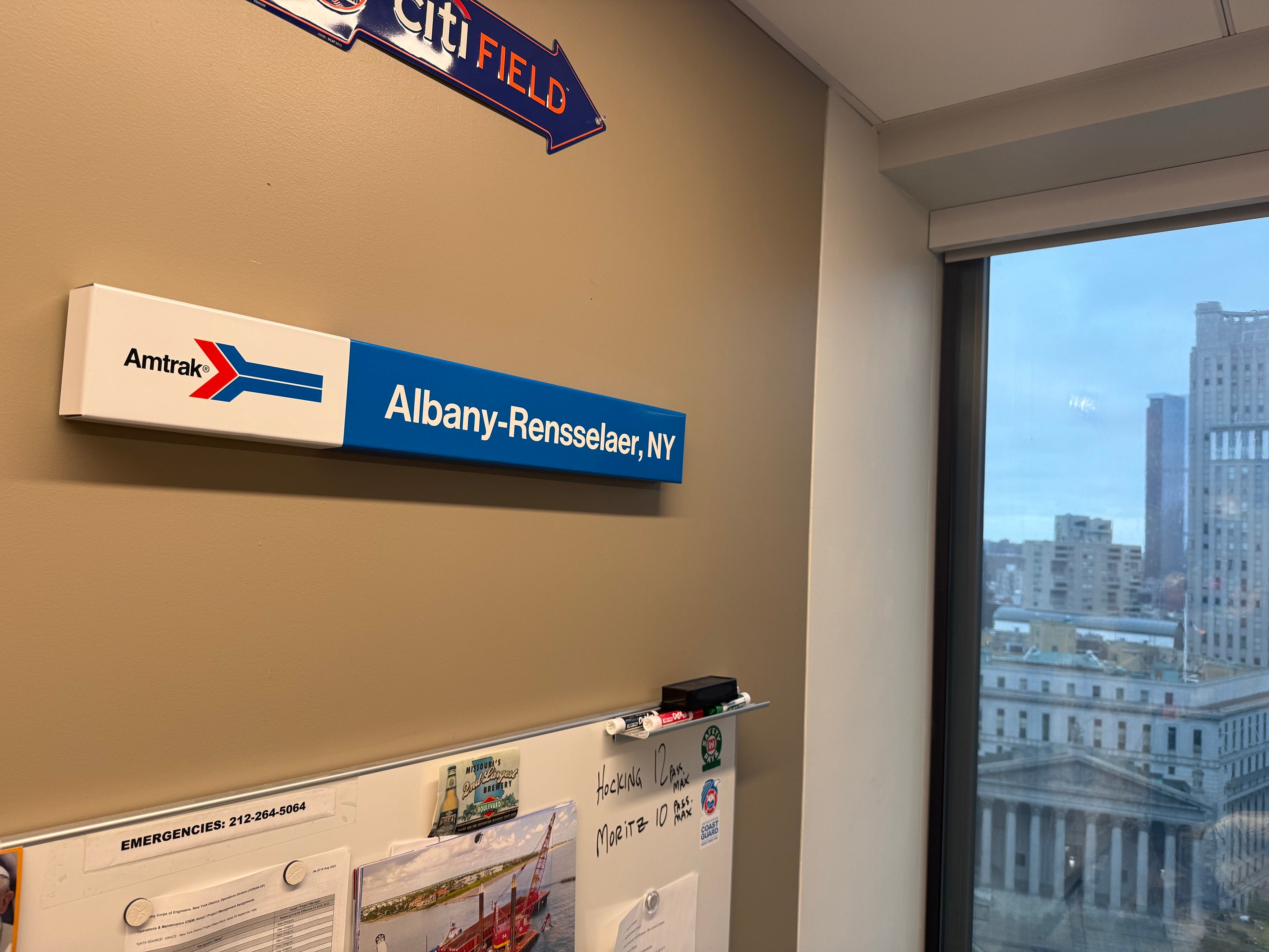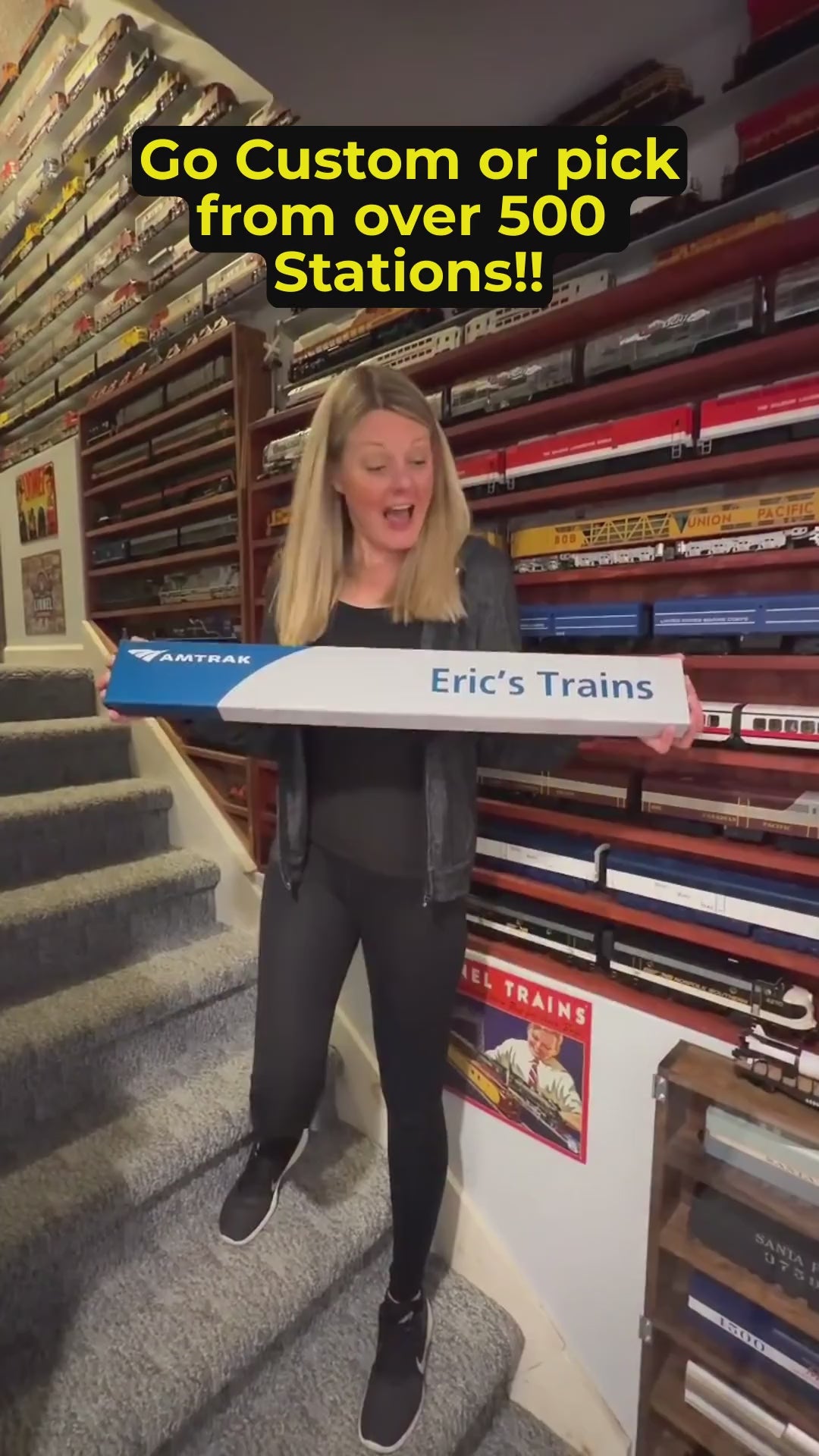 Celebrate your favorite Amtrak station with a mini platform sign! Retro station sign features the original Amtrak logo used from 1971 to 2000.