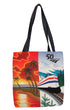 Tote bag features the pictured illustration on both sides and measures 18" x 18".