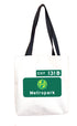 Tote bag features a detail of your favorite Garden State Parkway Exit on both sides. Measures 18" x 18".